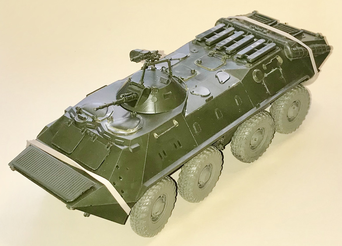 Well, this one is back on my workbench again. It was sidelined due to problems with the resin replacement wheels I had bought for this project. (a whole separate story there) Anyways, between CA glue, CA accelerator, and my motor tool a few weeks ago, I took care of the problems with the resin wheels in an afternoon bench session. This months AMPS meeting was a build nite meeting, so I added the wheels, and built the basic turret, along with a few other parts. Today I built the grenade launcher and some other fiddly bits on the turret, as well as adding the rear to the lower hull.