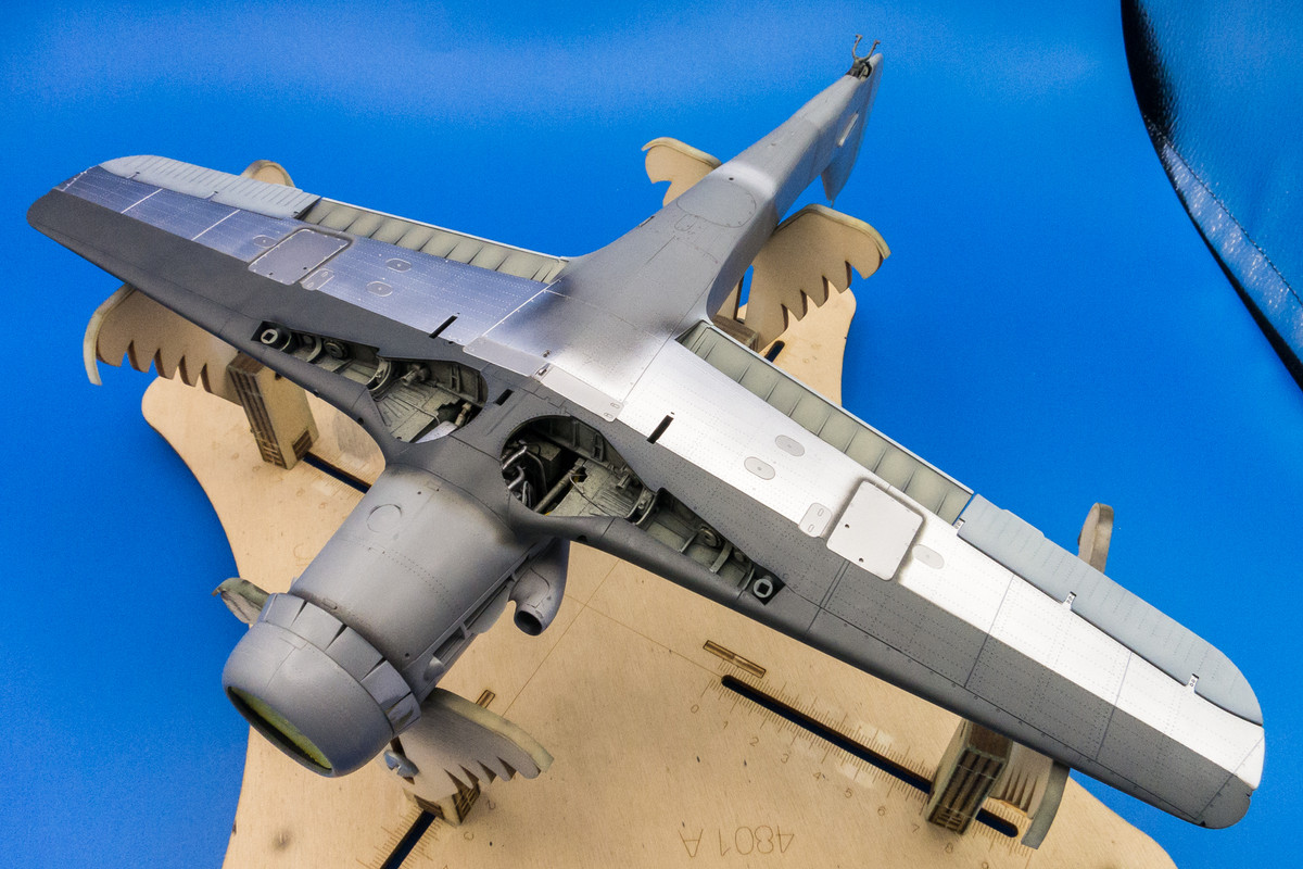 My plan, as of now, is to paint the upper wings RLM 74/75 with the 74 wrapping under to the forward wing bottoms. The base color for the fuselage will 76/81/82, similar to this color profile of 836016, one of the other recorded D-13's...