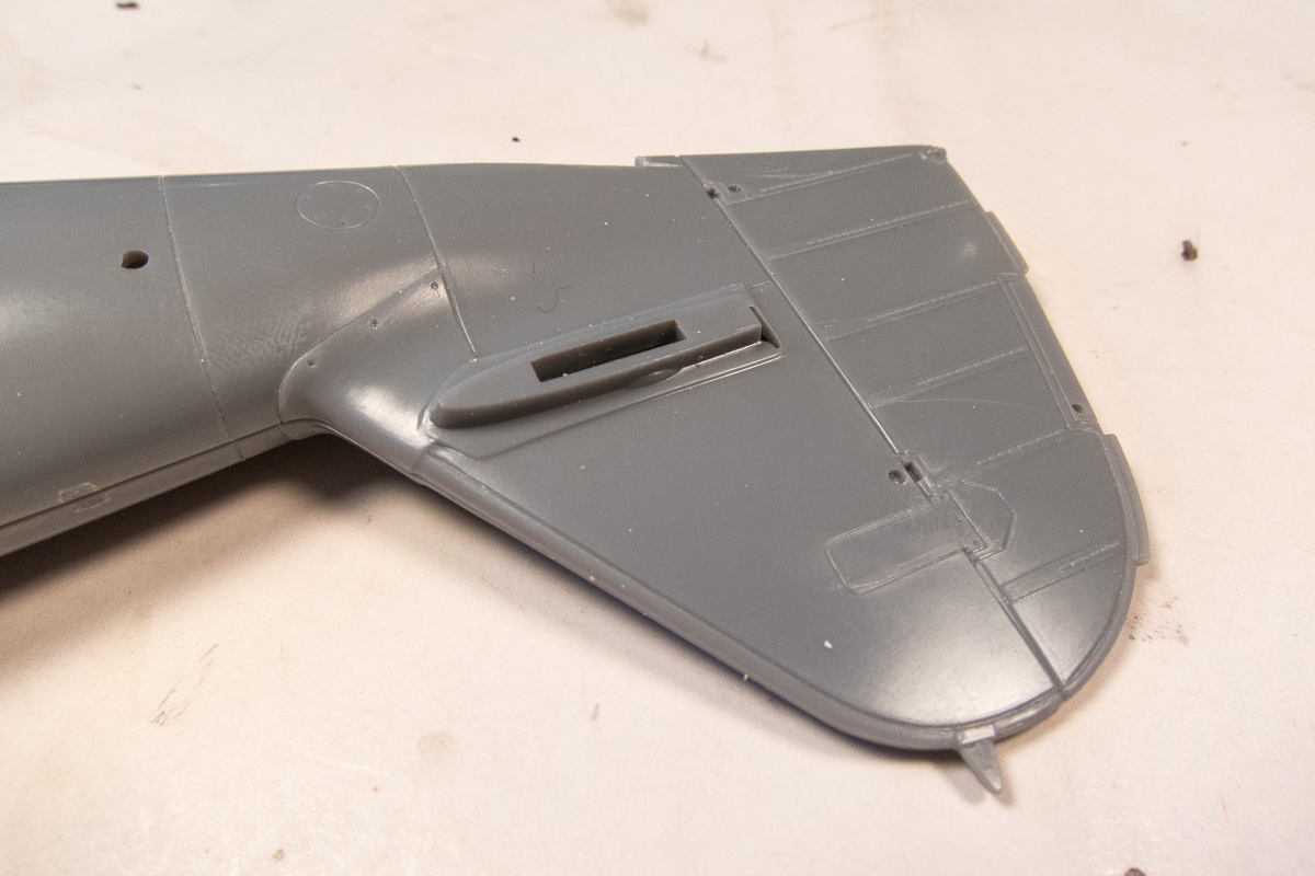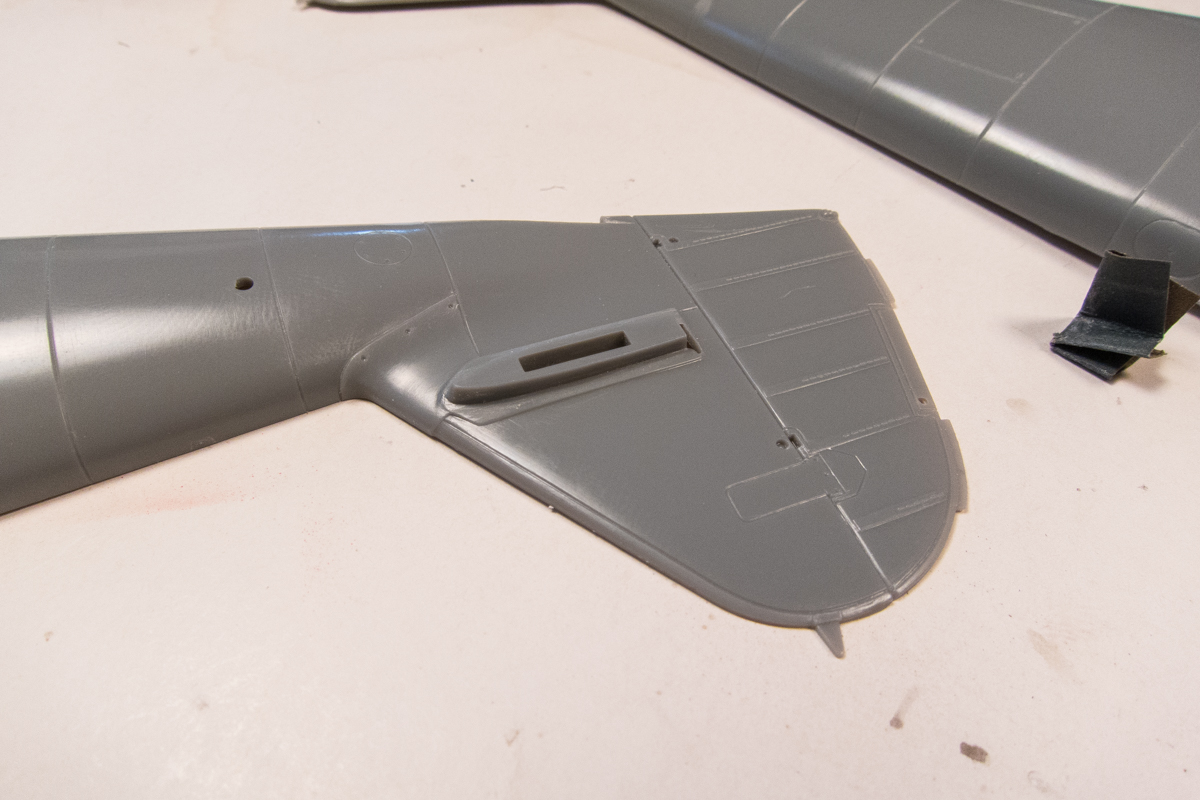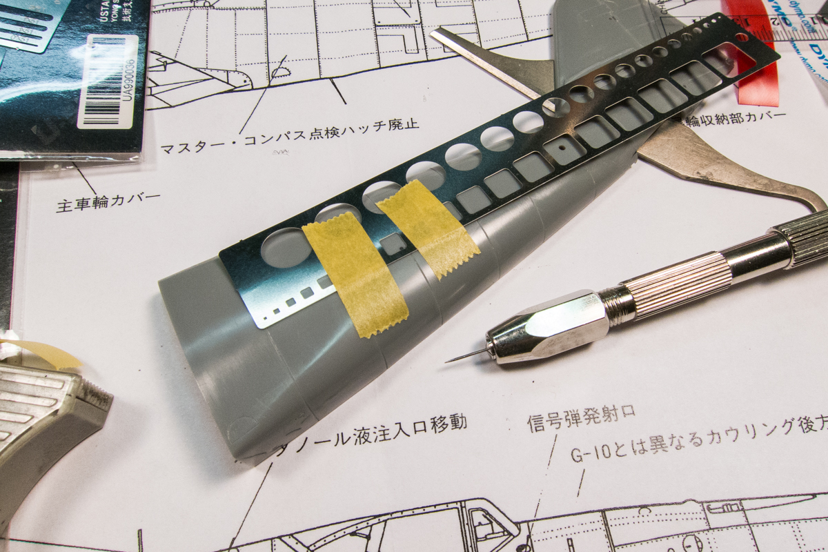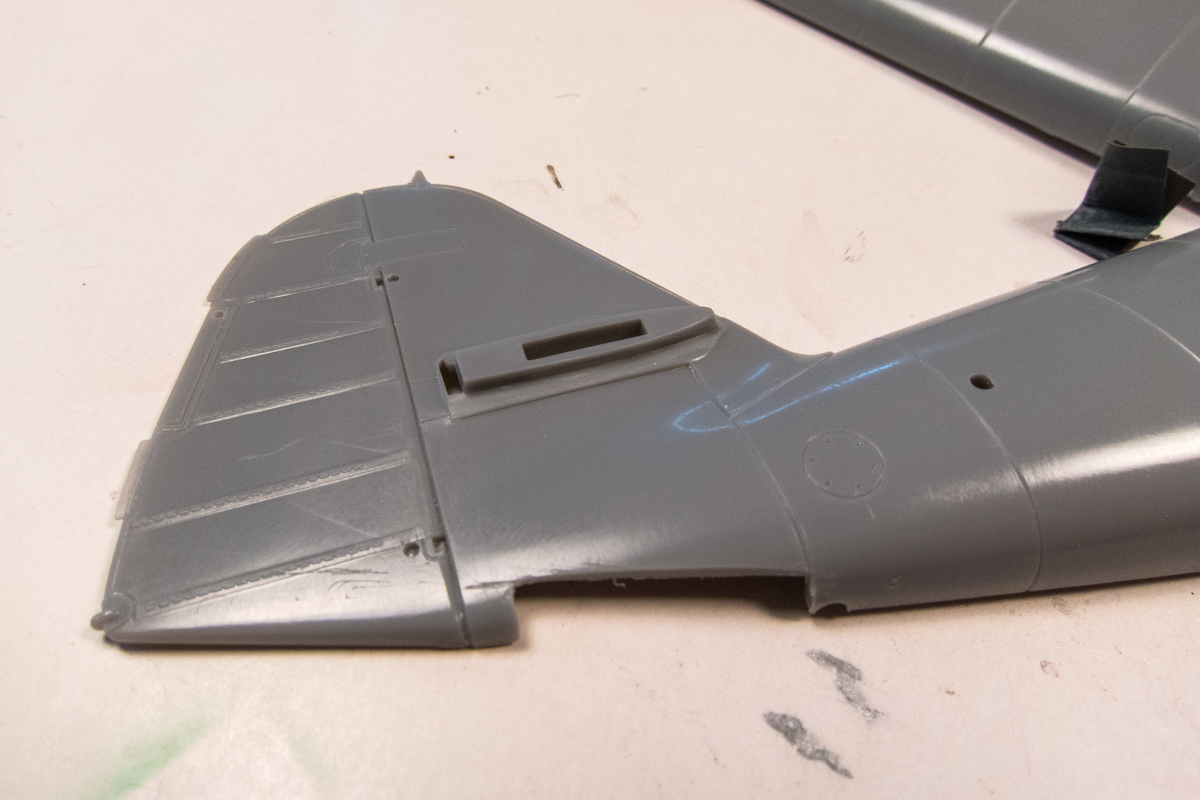 Using a couple of online articles, I am in the process of making some corrections to the Hasegawa kit. The small bumps at the base of the horizontal stabilizers are not present on the K-4 and need to be removed. The gouges and saw marks from the tail door removal will be repaired, don't worry!