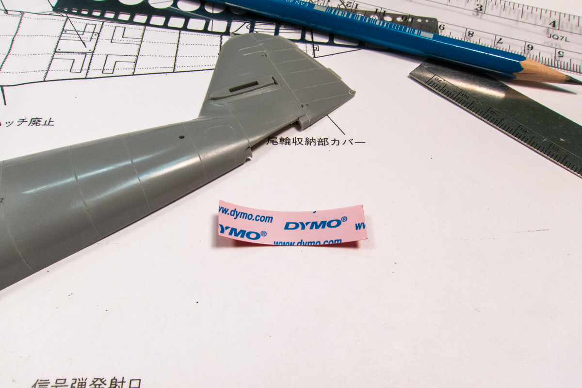 I use a scriber (by UMM-USA, not pictured) to cut a line but not all the way to the corners since the hatch has rounded corners. 2-3 passes are enough to scribe a line deep enough to remove the Dymo tape.