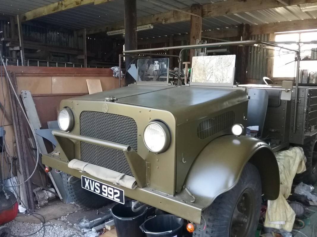 I've been working on the Bedford MWD and I have had a few issues, mostly with the proper location of parts. Everything fits well if it is in the right spot, but there are not any pins or other positive locating devices. When the cab floor is put in place it must be pushed hard up to the fenders that are molded to the frame. If that is not done, the front cab part which includes the firewall and steering wheel will not fit to the hood side panels and its proper position on the cab floor is unclear. Maybe it would be best to start by attaching the radiator and then the floor with white glue to allow later movement, then confirming that the firewall is set correctly. A test fit of the hood and side panels will be needed to confirm that all is well. The pictures in the instructions were not clear enough for me.