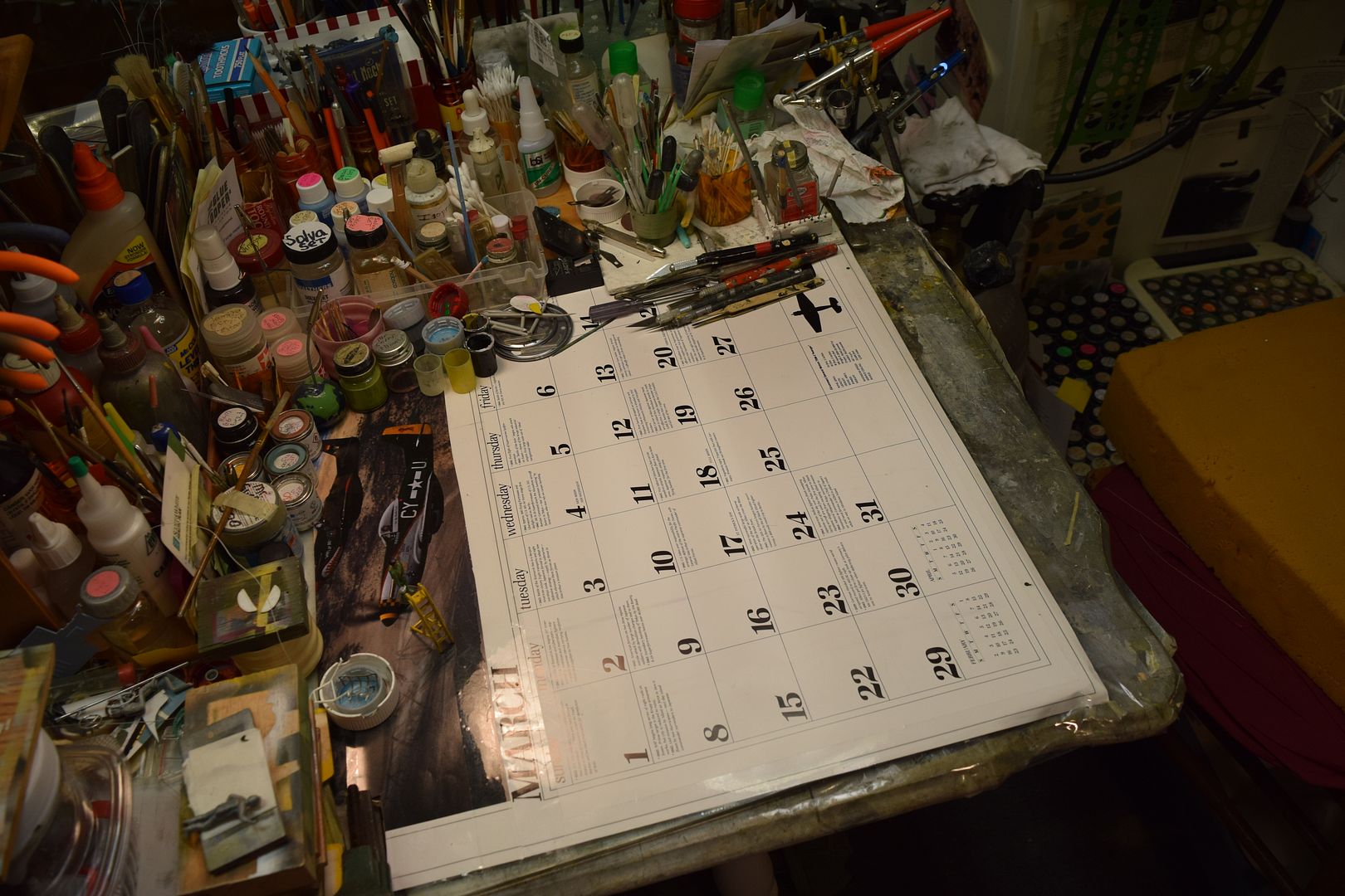 I have three workbench "stories". The table has been tidied up and organized in preparation for my next victim. I guess no work area is perfect, but I know mine could use a lot of help. There are a thousand places for little parts to hide and I could use more light, but it's what I have so I make it work.