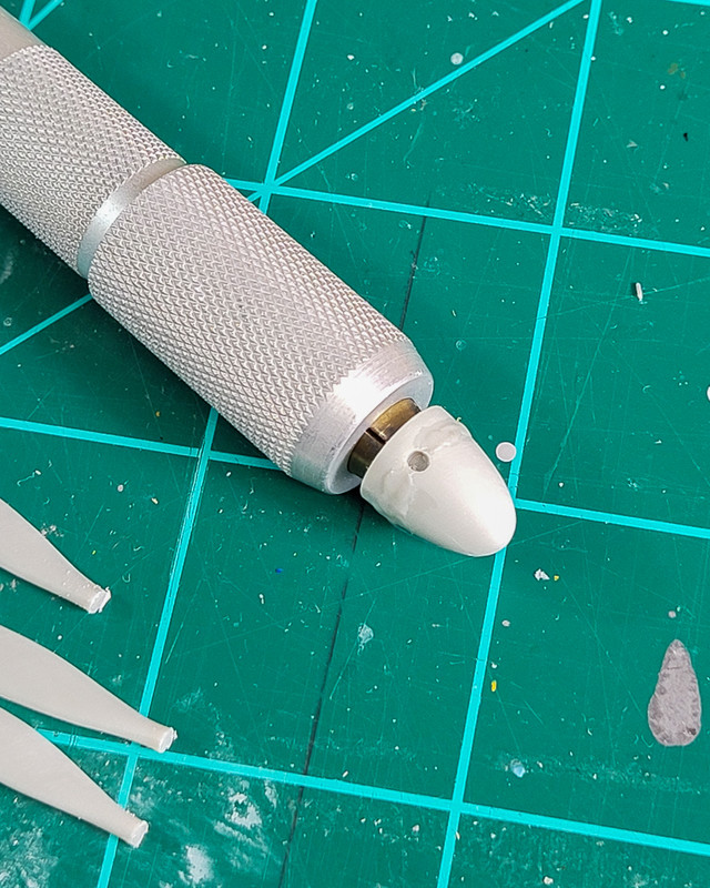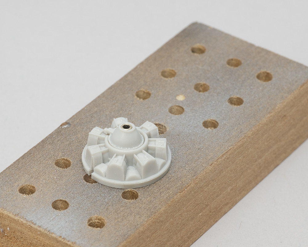 Filled problem areas of spinner with sprue-goo to make re-scribing easier (I hope).