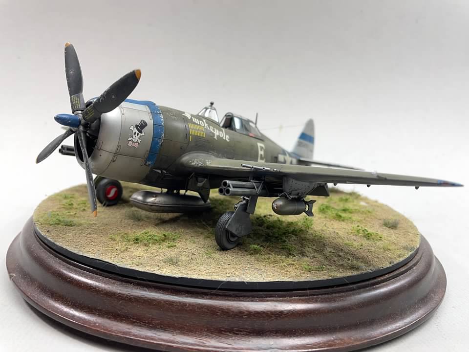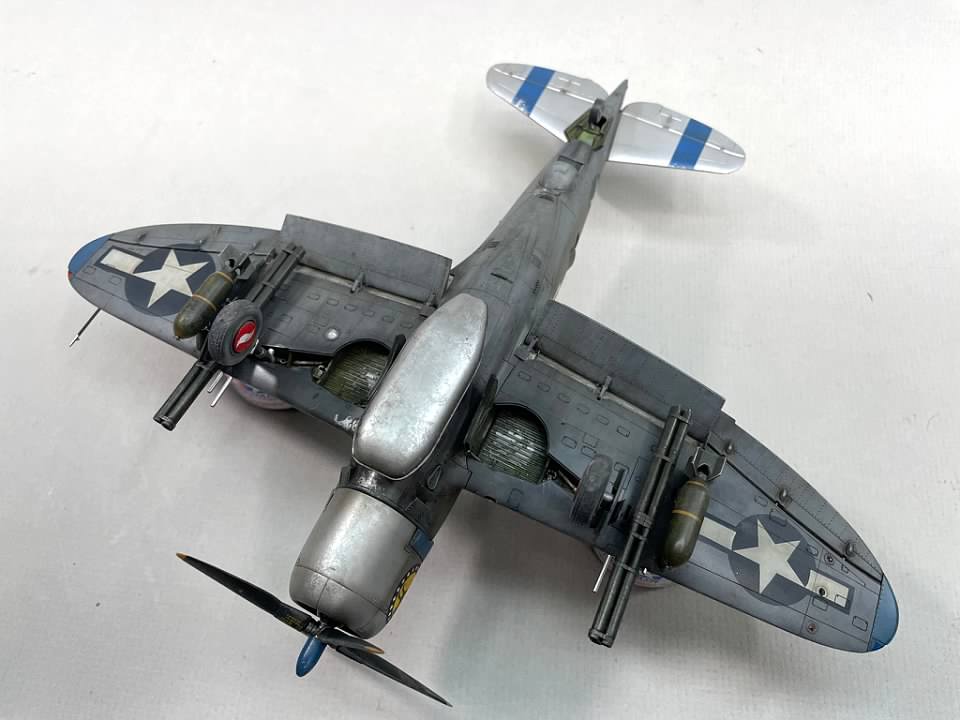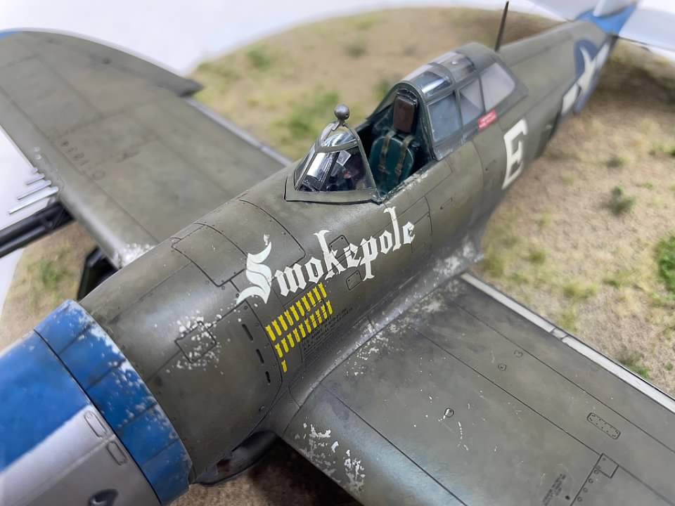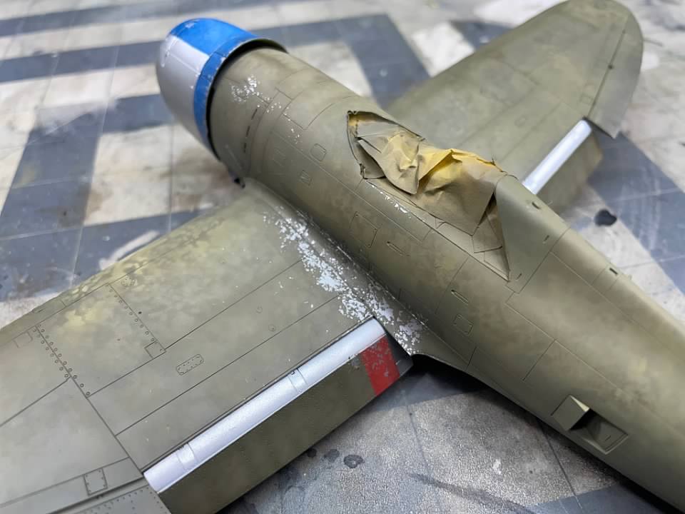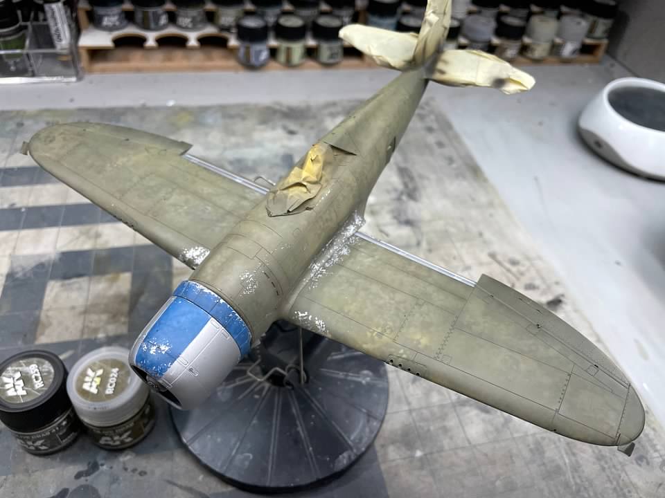 I was given license to "beat the devil out of it" (as Bob Ross would say)..... so I did. I used AK Interactive Real Colors Olive Drab and faded Olive Drab over Neutral Grey. I recently discovered the nifty Uschi Spatter templates which makes the basing technique a chinch. It's just a matter of lightening or darkening the paint to get the effect you want. Chipping was a mix of the hairspray techique and liquid frisket. Extras are Ultracast wheels and PE seatbelts (I went with the green ones for a change). I wired the engine and landing gears. Main markings were painted on with Maketar masks. The decals used were by Superscale. I had no issues.