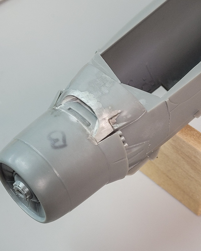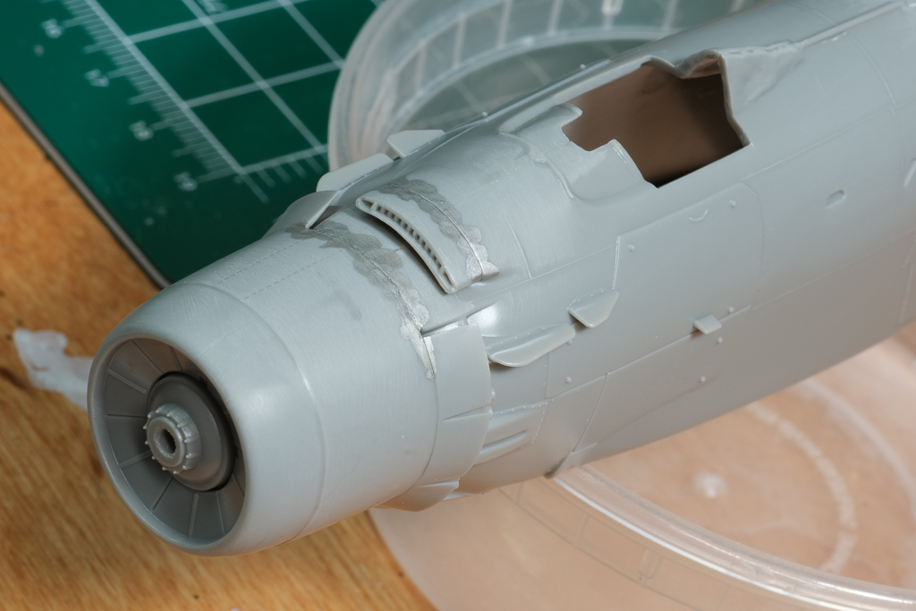 The air intake needs quite a bit of work as well -- I am thinking Apoxie Sculpt and lots of wiping with a wet cotton swab ...