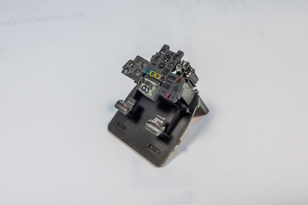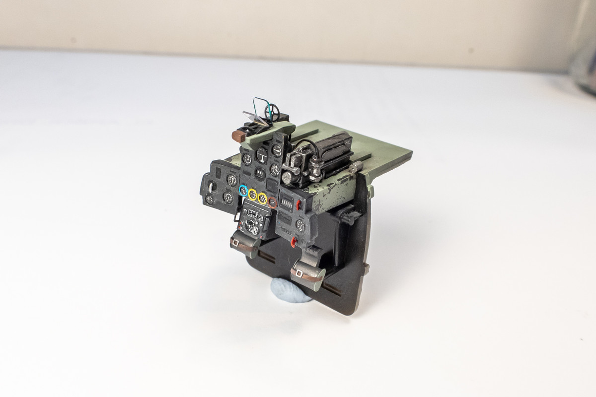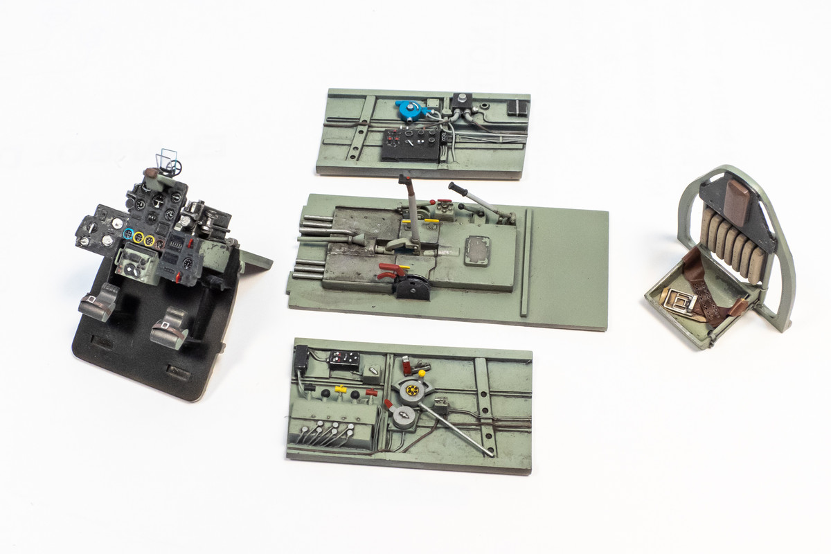 Other cockpit components at various stages in the painting/weathering process.