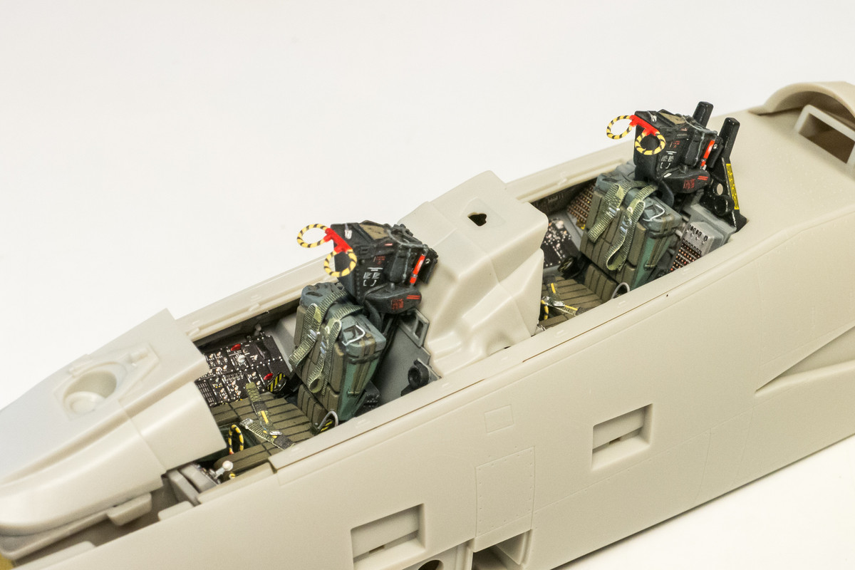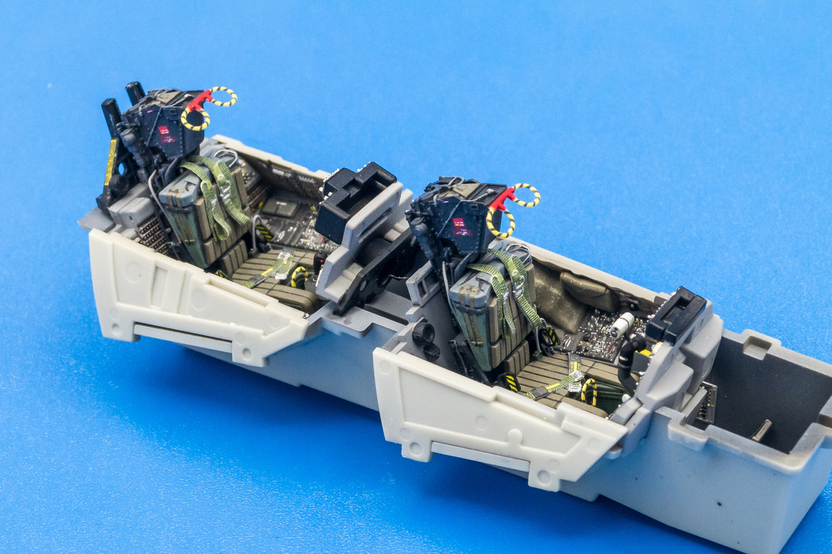 I went ahead and used the Quinta handles on the seats as well as the Quinta harnesses, which I think look much better than the Eduard photoetch. There were some smaller handles and knobs from the Eduard PE set that were added as well as couple of wiring pieces specified in the Eduard instructions.