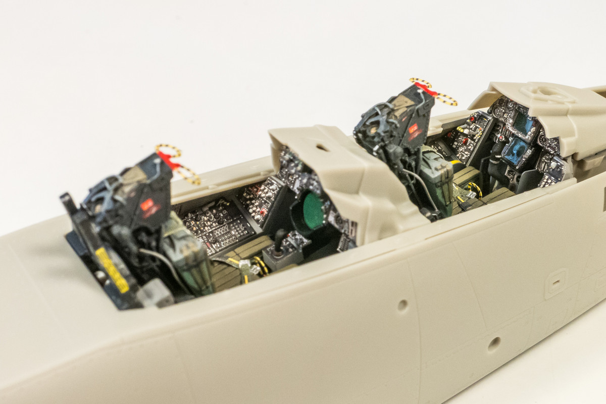 The cockpit components have been glued together but the seats have not yet been glued in. I need to verify that the canopy clears the seat tops.