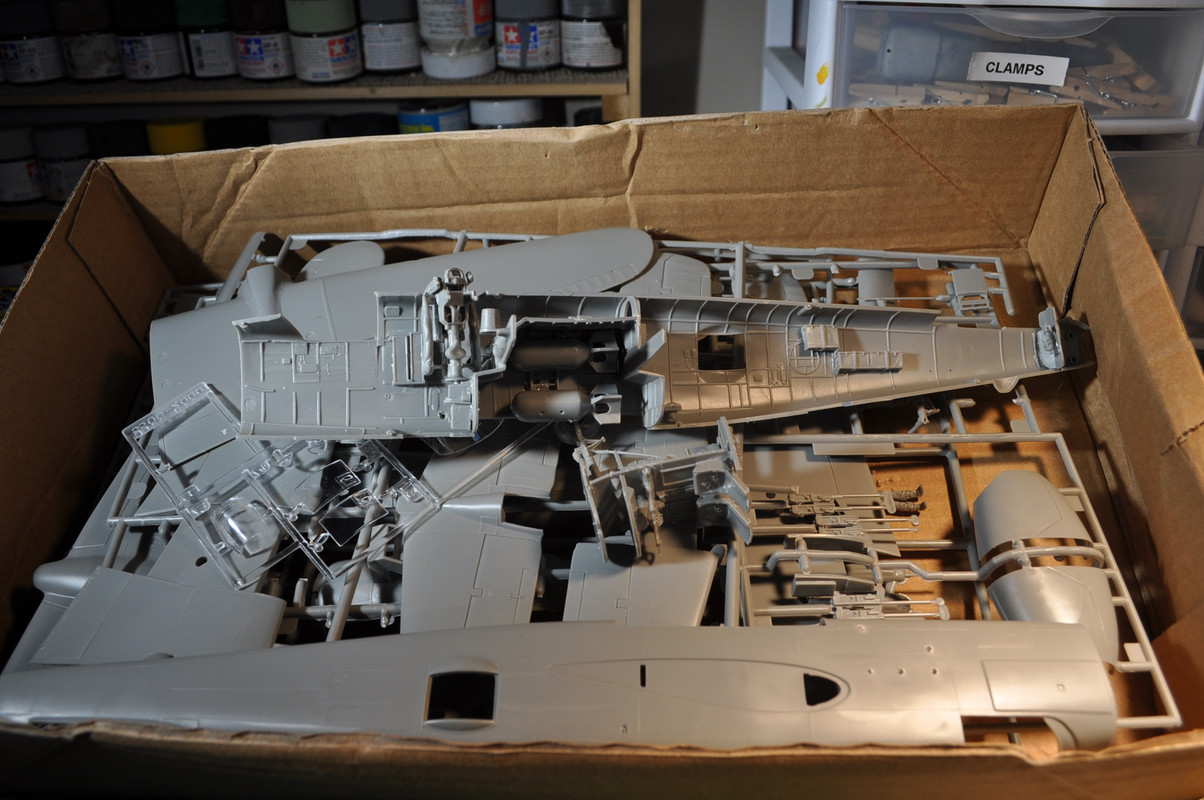 I knew it had been started, but, shama-lama-ding-dong....A lot of tube glue used. Most of the interior in place and unpainted. Not horrible assembly, but it is all unpainted.