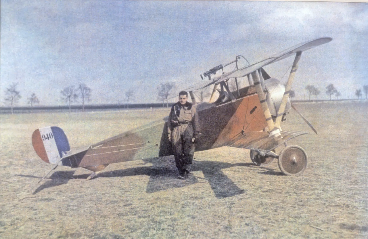 Autochrome (Lumière brothers) color method, very faithful regarding the color rendering, representing the Jean Chaput Nieuport 11 at the time of the Verdun battle (April 1916)